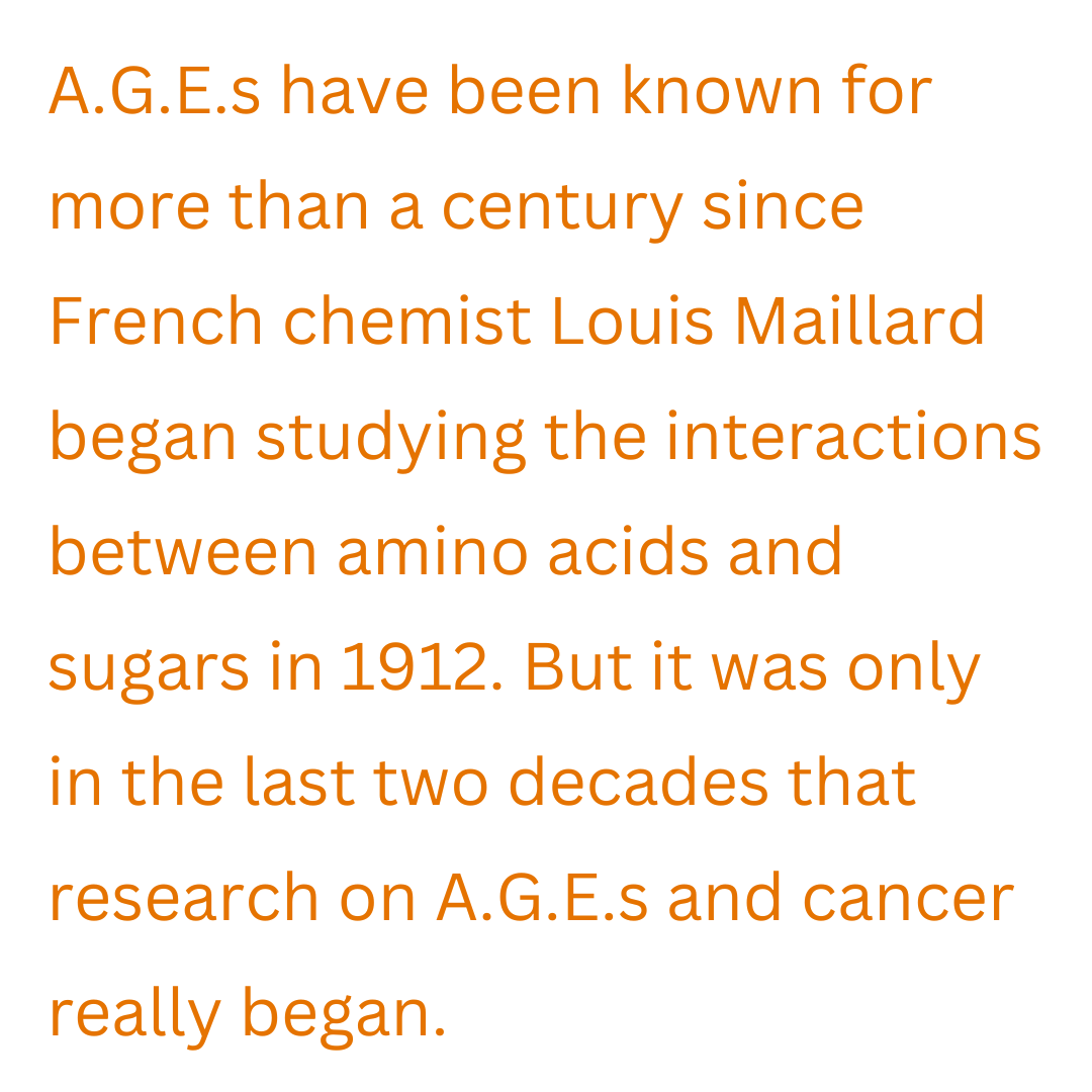 A.G.E.s have been known for more than a century since French chemist Louis Maillard began studying the interactions between amino acids and sugars in 1912. In fact, the chemical reaction called the Maillard reaction, which can be seen when a slice of bread slowly transforms into a perfect golden-brown piece of toast, is named after him. But it was only in the last two decades that research on A.G.E.s and cancer really began.