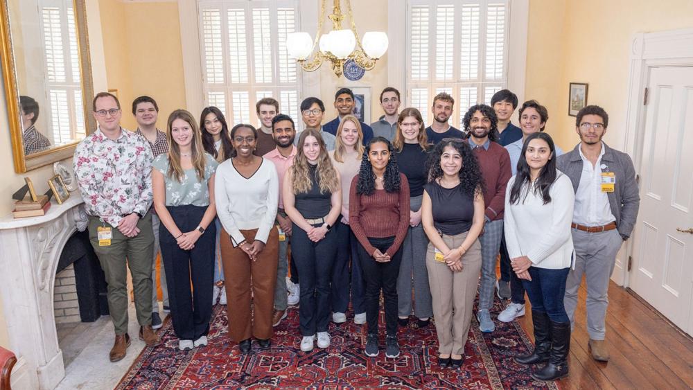 Jim and Fran McGlothlin visit with VCU School of Medicine students who have been named McGlothlin Scholars. This year, 32 McGlothlin Scholars are among the hundreds of medical students studying in the McGlothlin Medical Education Center. Photo: Jud Froelich, VCU Development and Alumni Relations