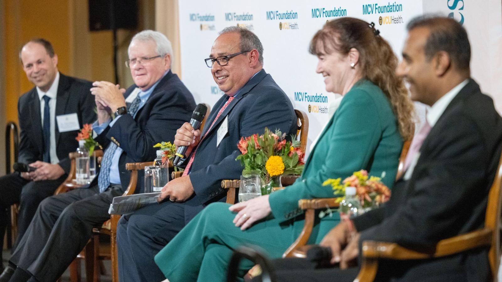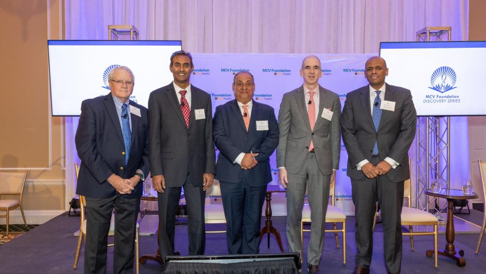 Discovery Series RVA panelists included (from left to right) Daniel Grinnan, M.D: Alpha “Berry” Fowler III, M.D.: Moderator Art Saavedra, M.D., Ph.D.: Patricia Sime, M.D.; and Vipul Patel, M.D. Photos: Daniel Sangjib Min, MCV Foundation