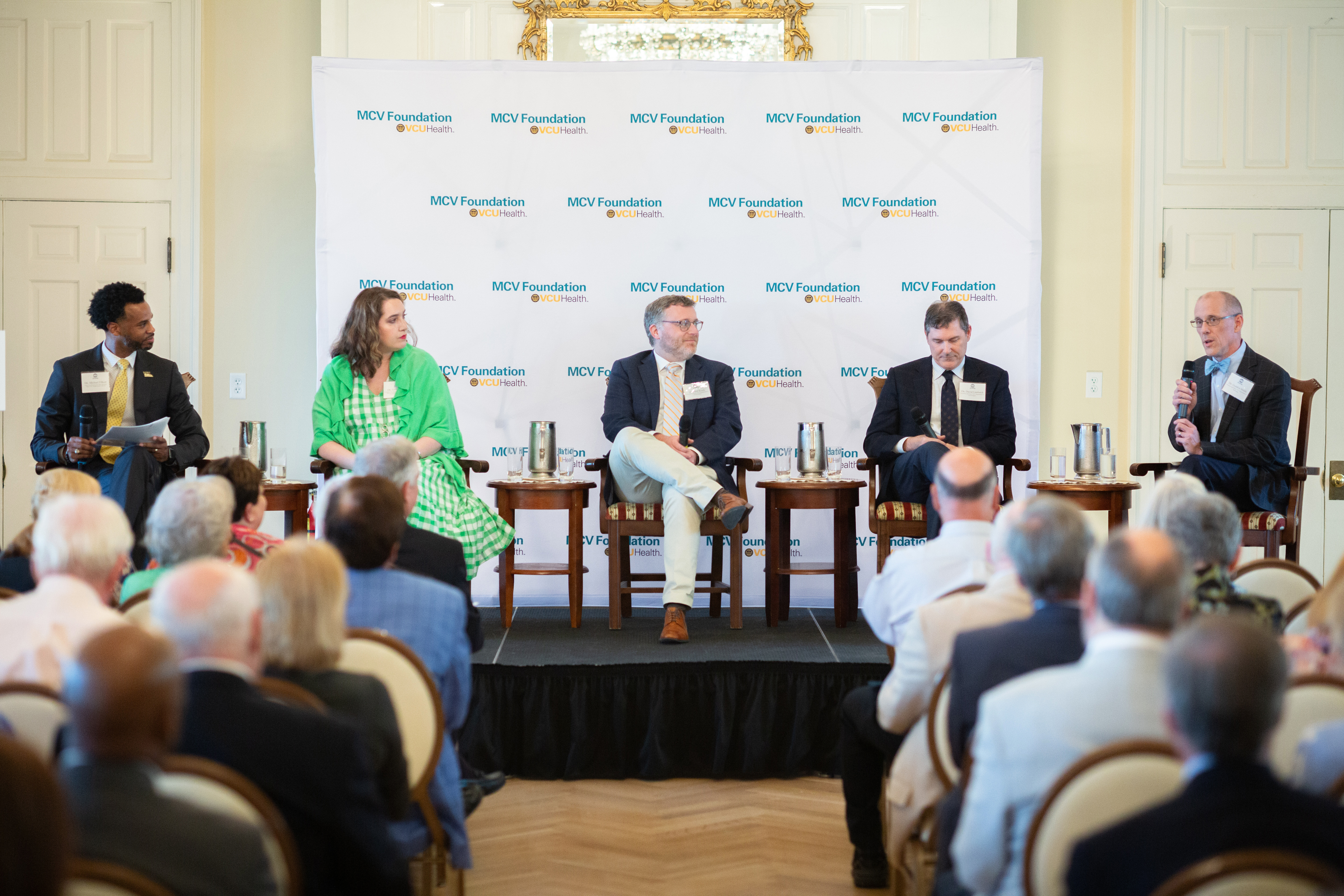 The topic for the Richmond Discover Series RVA event was “Neuroscience Frontiers: Redefining Our Understanding of the Human Brain.” Michael Elliott, Pharm.D., senior vice president and COO of VCU Health, moderated the expert panel, which featured: A. Gordon Smith, M.D., professor and chair, VCU Department of Neurology and the Kenneth and Dianne Wright Distinguished Chair in Clinical and Translational Research; David D. Limbrick Jr., M.D., Ph.D., professor and chair, VCU Department of Neurosurgery and the department’s James W. and Frances G. McGlothlin Chair; Leslie Cloud, M.D., associate professor and Rogliano Family Endowed Chair in the VCU Department of Neurology and director of the VCU School of Medicine’s Parkinson’s Disease Program at the VCU Parkinson’s and Movement Disorders Center; and Paul F. Koch, M.D., assistant professor, VCU Department of Neurosurgery.