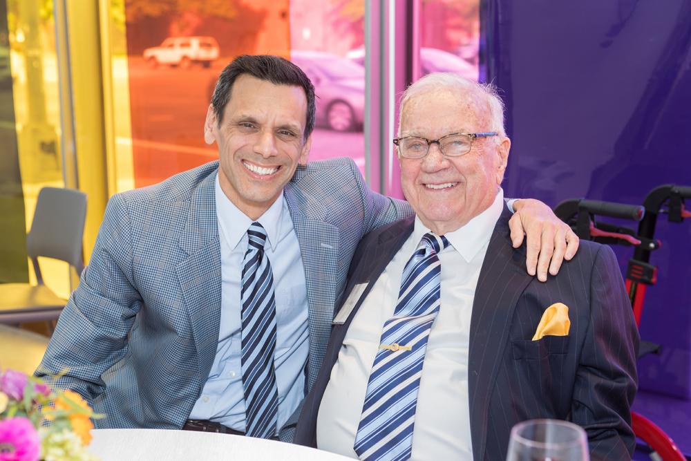 Michael Rao, Ph.D. (left), VCU president, sits with Ken Wright, one of VCU Health’s most generous supporters, at the 2019 MCV Society reception.