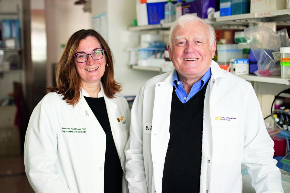 “Our interaction is a great example of two people bringing in very different backgrounds to tackle the challenges faced in medicine,” Dr. Koblinski said. “Together, we can have a stronger research project that engages experts across campus. We also wouldn’t have had this much success without the help of talented graduate students, postdoctoral fellows and laboratory managers like Erica Peterson in Dr. Farrell’s lab.”