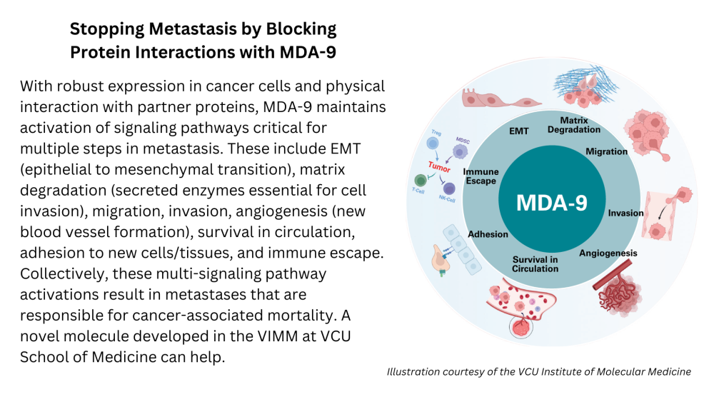 What’s most exciting is that our preclinical studies confirm that inhibiting MDA-9 either genetically or pharmacologically can profoundly suppress metastasis.